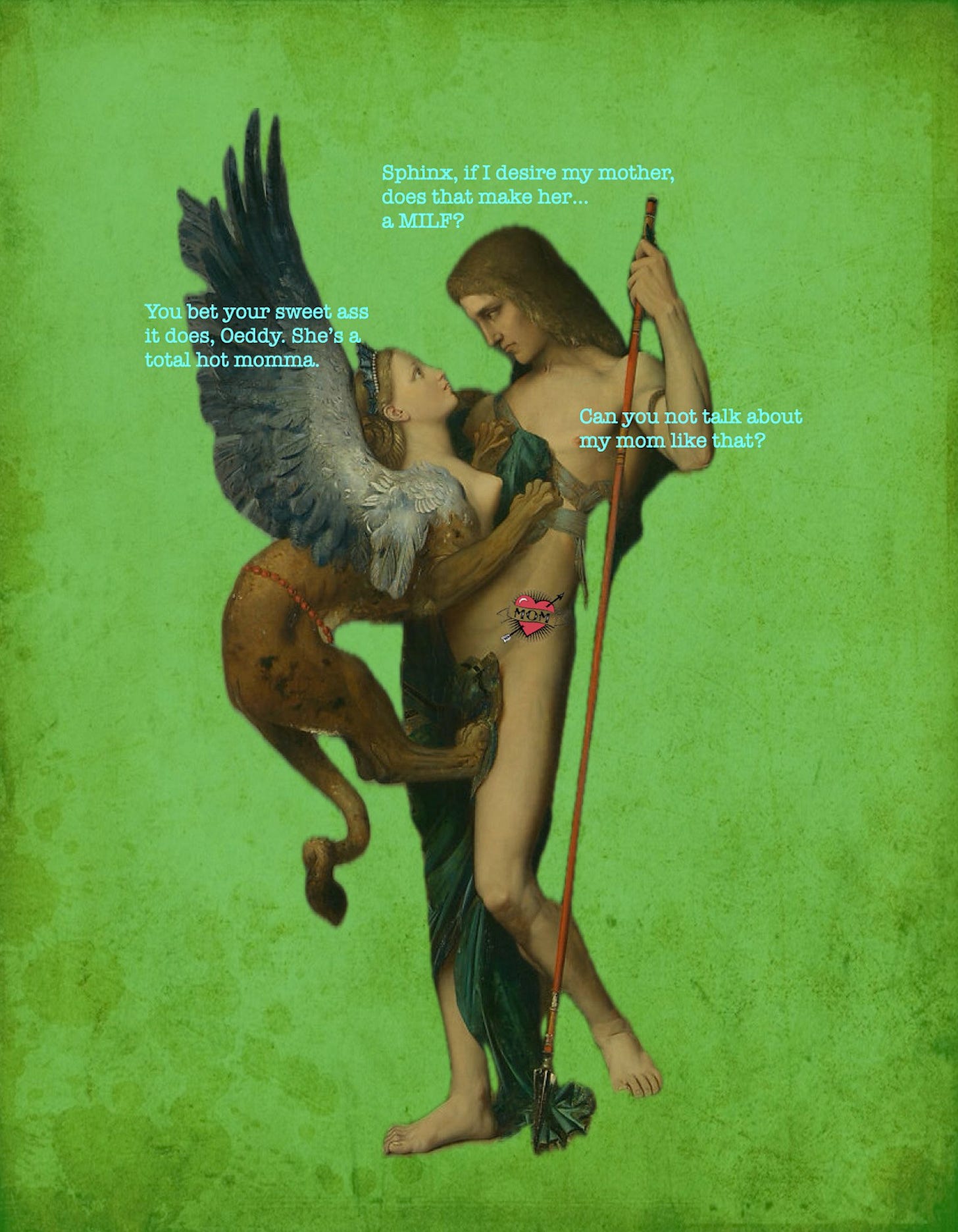 Repeat a lie often enough and people start to believe it—especially if the lie is something they desperately want to believe: “the climate crisis is a hoax”; “Freud has been discredited”; and “MILFs are sexy because of feminist advancements in the workplace.” The world is so much simpler, healthier, safer, and cleaner when looked at without functioning eyes! Like Freud, Oedipus was really onto something.